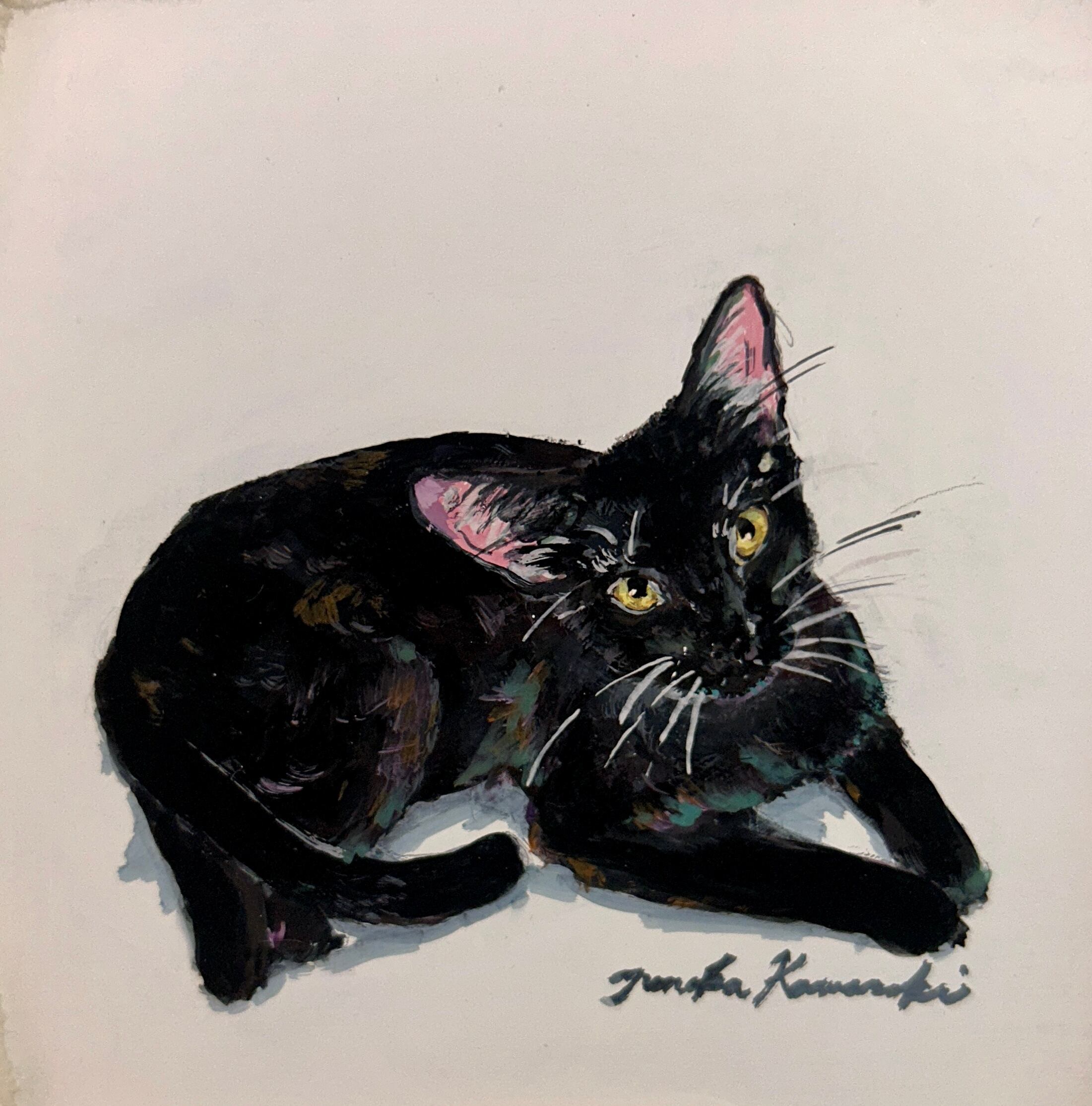 金色の瞳が印象的なくろねこの原画です。